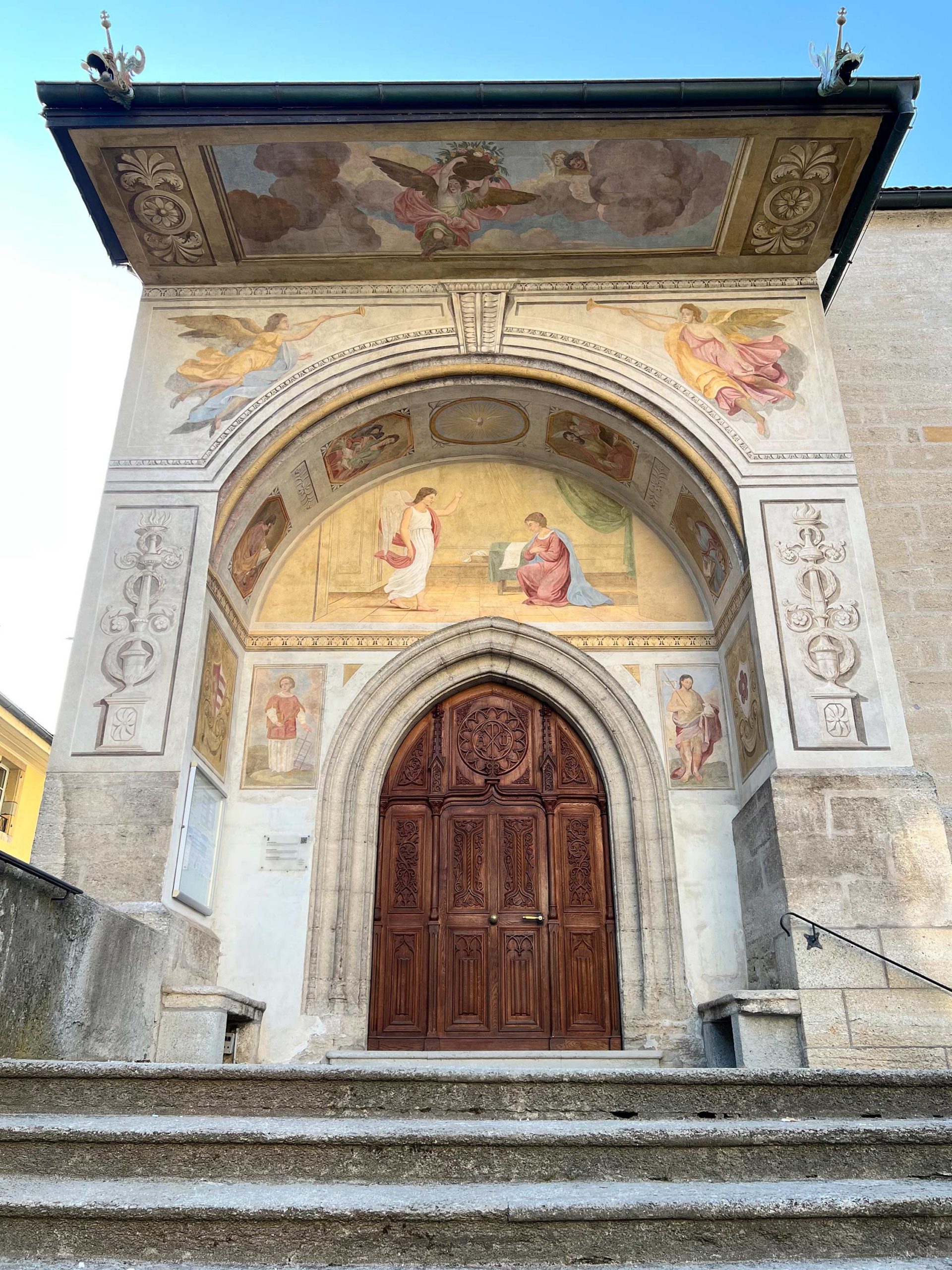 Château de Gruyères – Salle des Comtes – Conservation des graffitis historiquesSalle Susanna-Hôtel cantonal de FribourgLa Chapelle de MontbanEstavayer-le-Lac – Collégiale Saint-Laurent – Porche extérieur