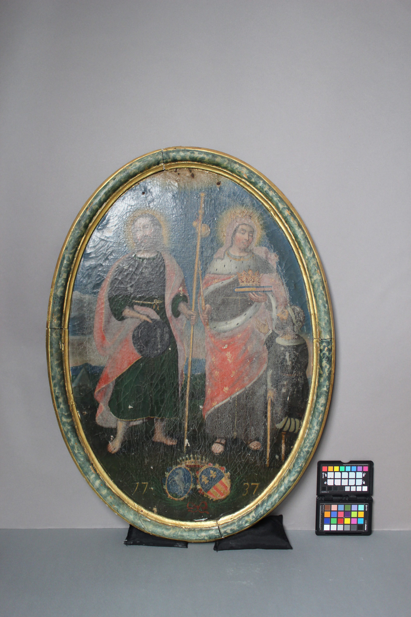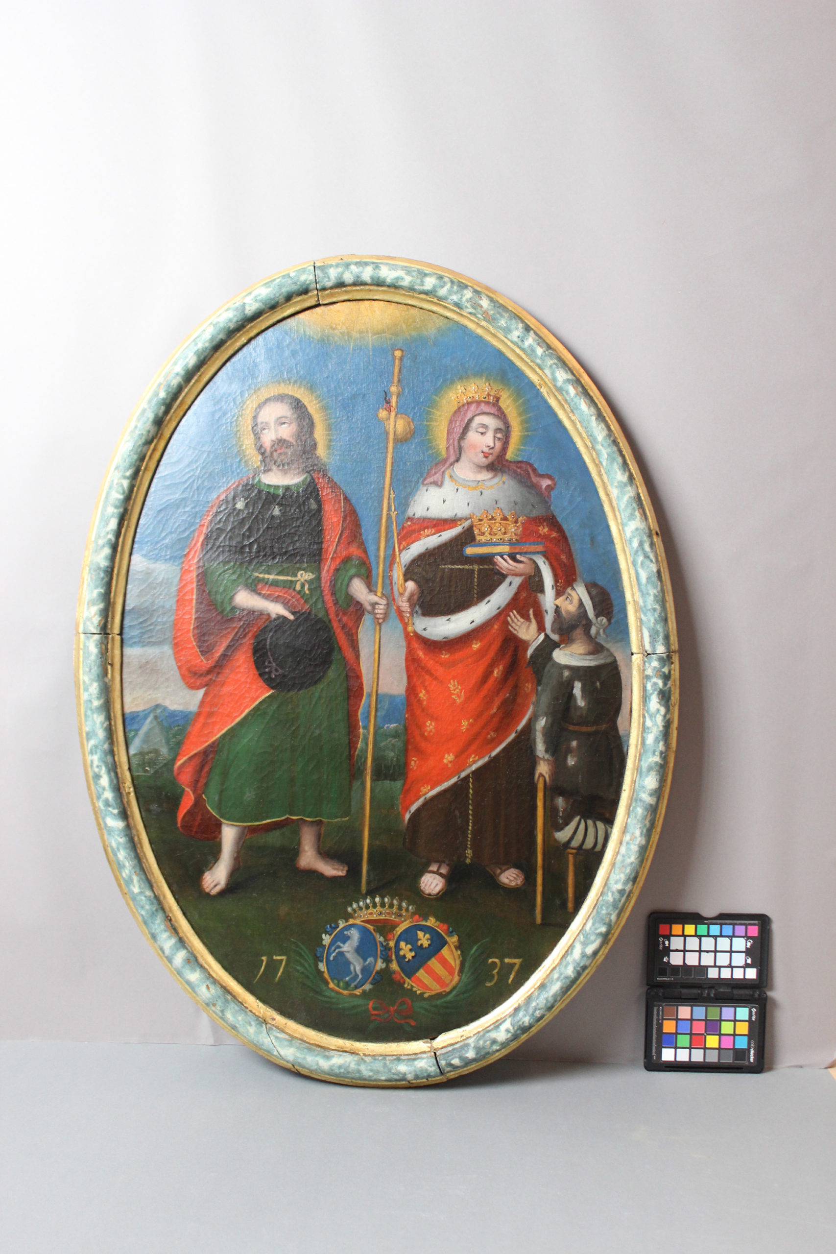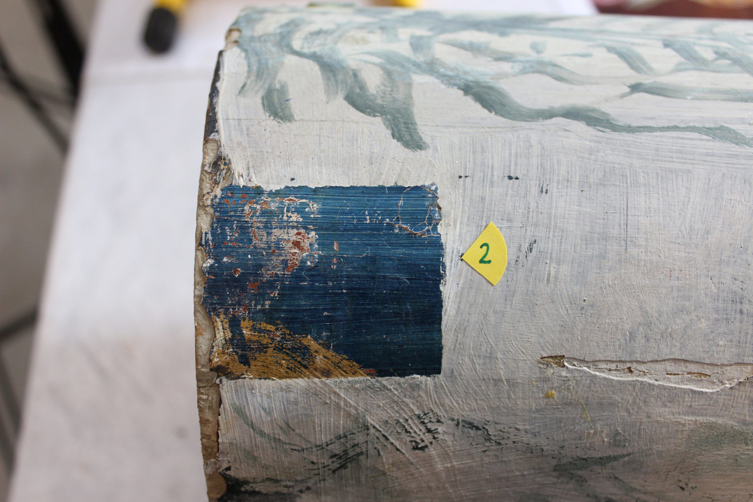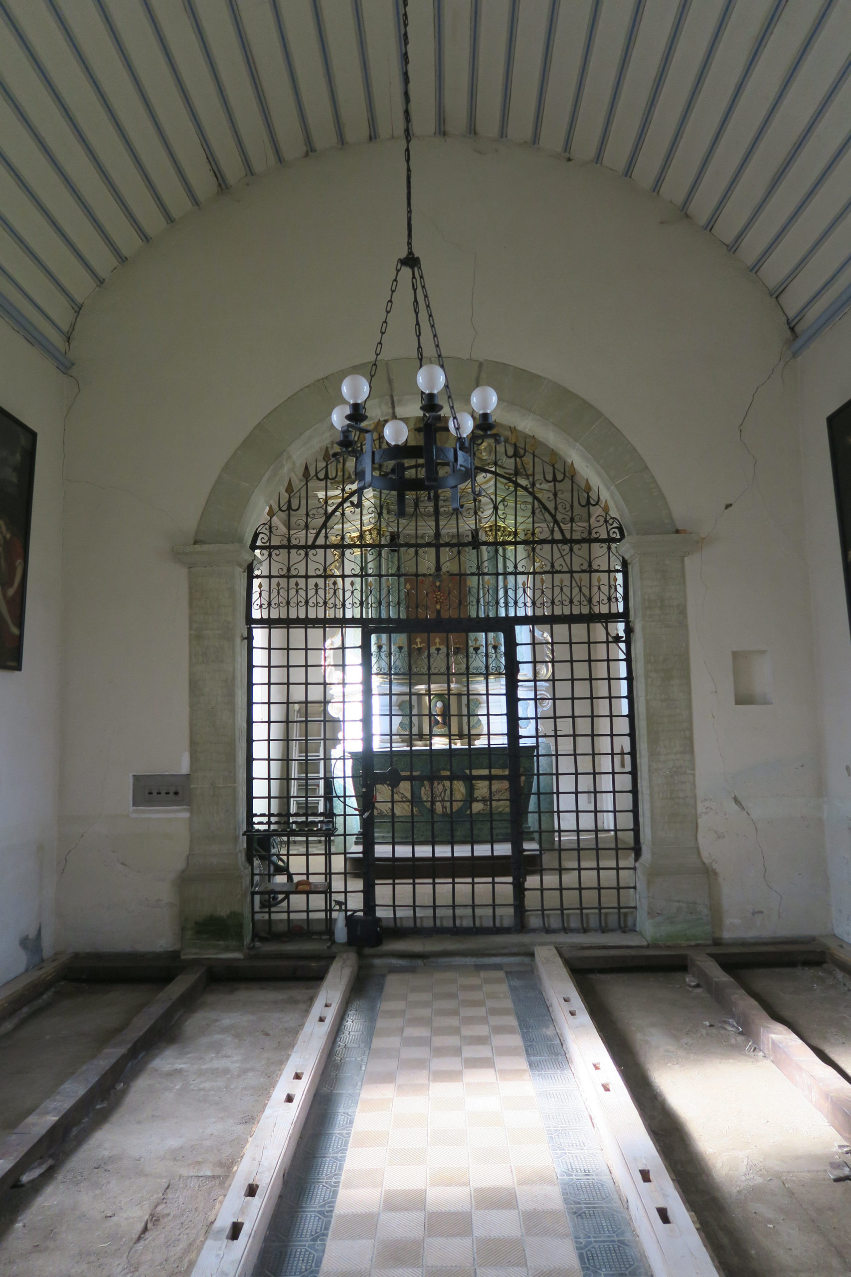 Description : La chapelle de Montban a été construite en 1727 au cœur du village de Farvagny-Le-Grand. Avant tout travaux, l’ensemble de l’intérieur de la chapelle était peint en blanc et les premiers sondages de 2021 ont révélé la présence d’un décor peint sous-jacent datant du tout début du XXème siècle. Ces découvertes nous ont permis de reconstituer fidèlement le décor, avec son faux-appareil, ses frises végétales de corniche et d’encadrement, et ce couronnement végétal au-dessus de l’arc triomphal.